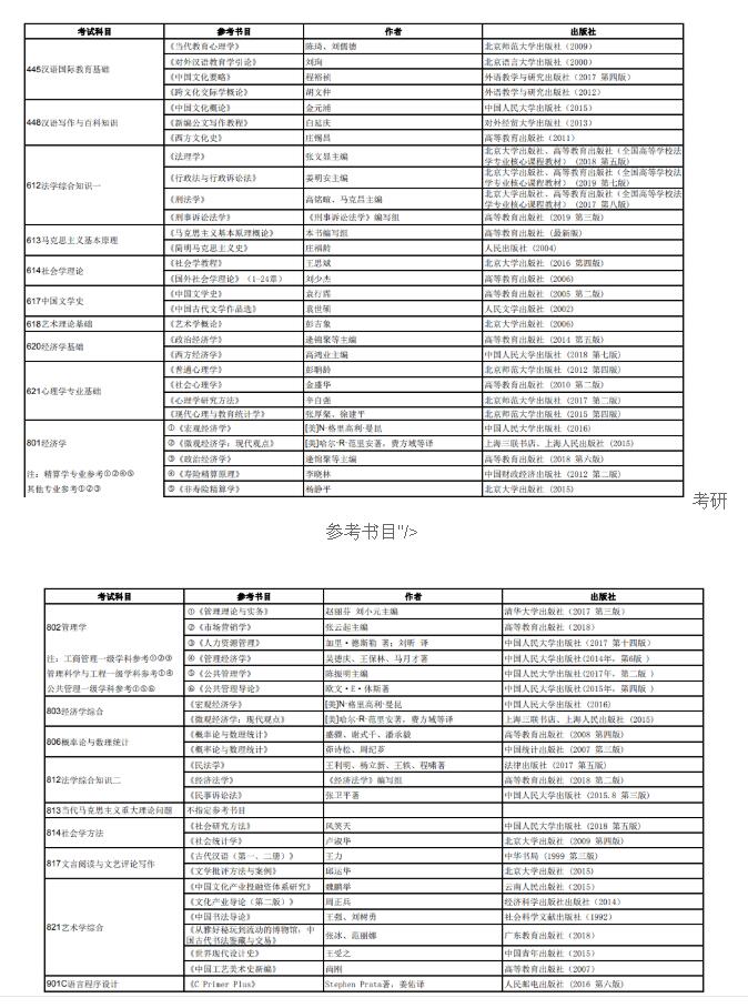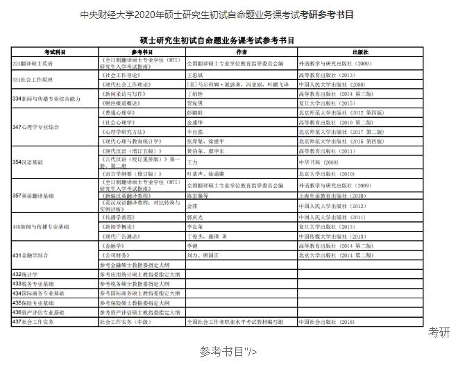 中央财经大学初试自命题业务课考试2020考研参考书目