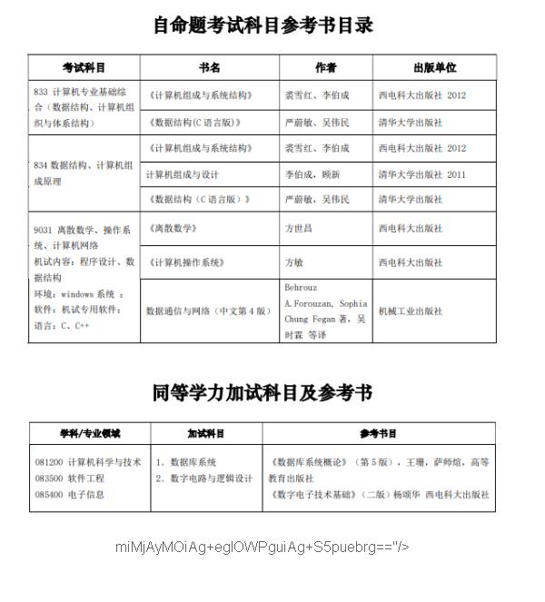 西安电子科技大学计算机科学与技术学院2020考研参考书目