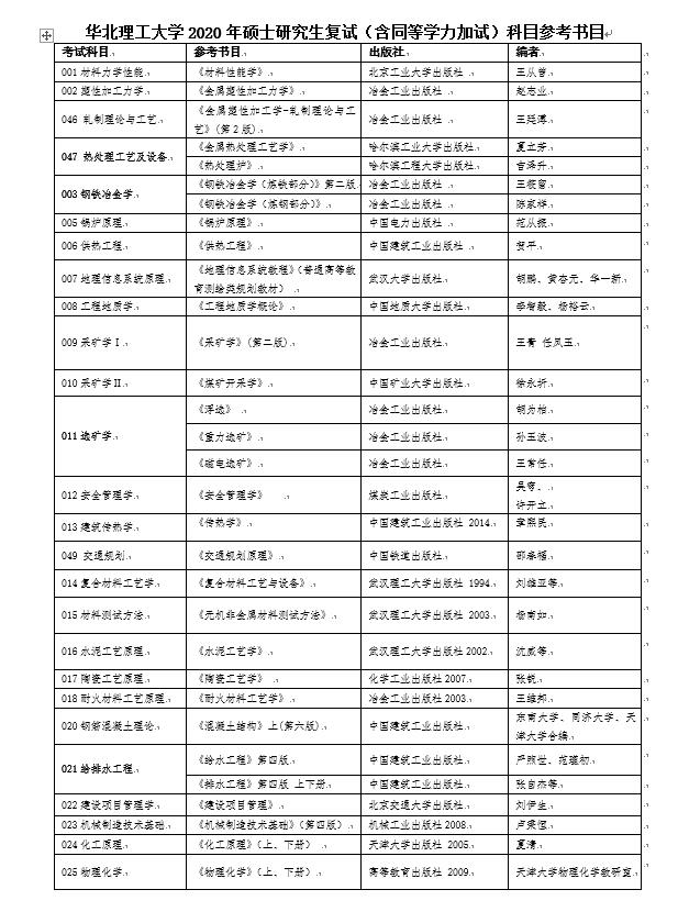 华北理工大学2020考研复试科目参考书目