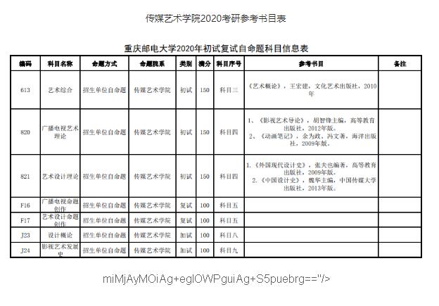 重庆邮电大学传媒艺术学院2020考研参考书目