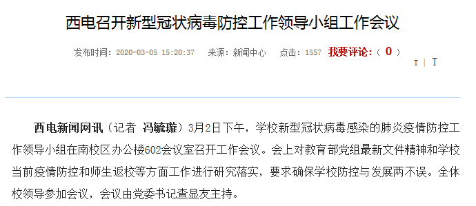 根据近日西安电子科技大学官网发布的新闻《西电召开新型冠状病毒防控工作领导小组工作会议》,其中提到“要做好研究生招生工作,统筹考虑复试时间和复试形式,科学细致制定网络面试等新增环节的工作方案”。