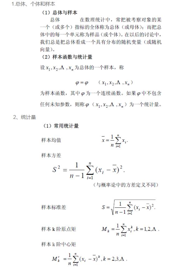 2021考研数学基础复习之数理统计的基本概念小结一