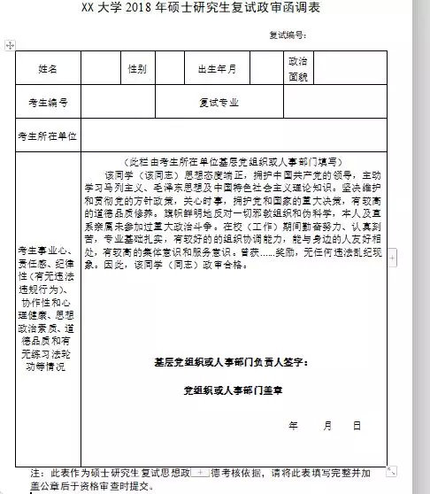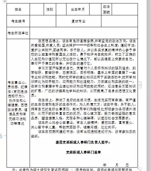 再询问政审表中的评价是否需要自己填写,如果需要,请参照模板,如果不需要,就带着填有个人信息的政审表去盖章就行啦。