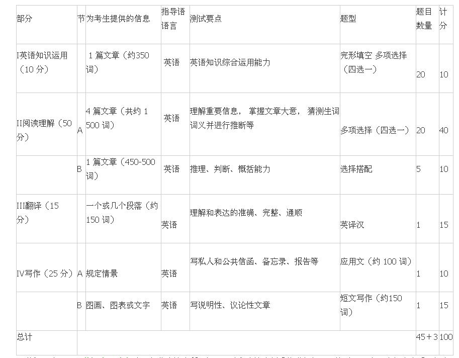 试题分四部分,共48题,包括英语知识运用、阅读理解、英译汉和写作。第一部分英语知识运用