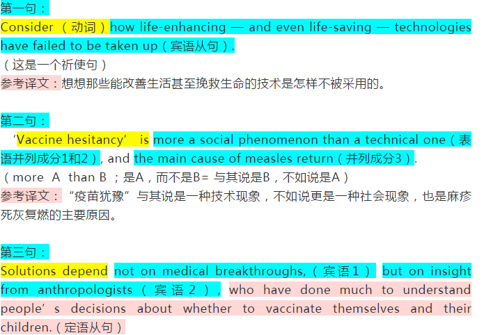参考译文:解决方案不取决于医学突破,而是人类学家们的洞见,他们为理解人们是否给自己和孩子接种疫苗的决定做了许多工作。