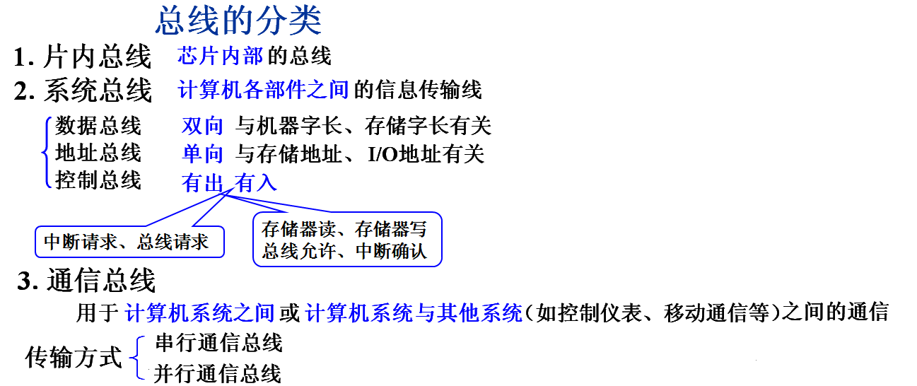 总线是连接各个部件的信息传输线,是各个部件共享的传输介质,总线上信息的传送分为串行和并行传输