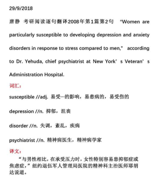 2008年第1篇第2句 “Women are particularly susceptible to developing depression