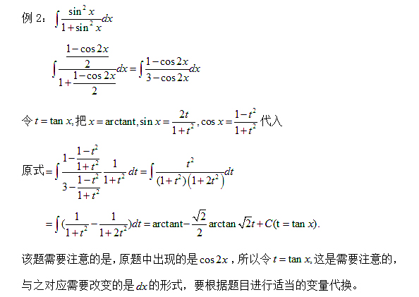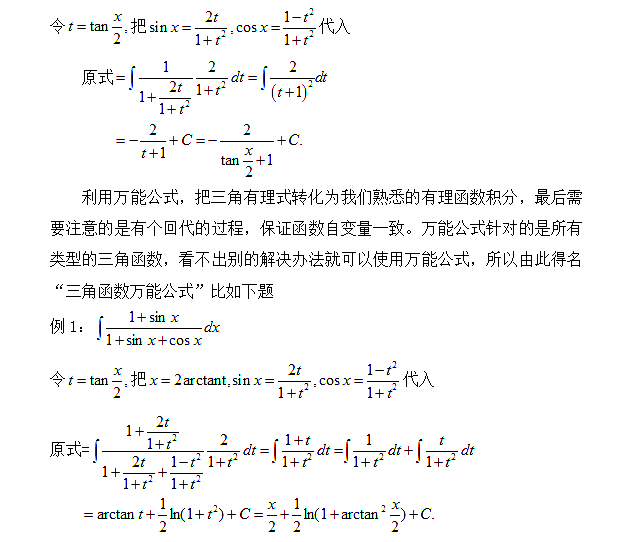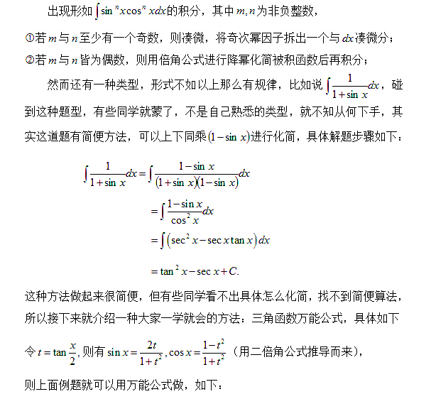 2020数学冲刺考点:万能公式在三角函数积分的应用