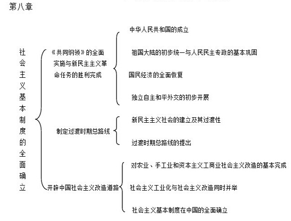 史纲第八章是革命史部分,讲述从新民主主义向社会主义过渡的开始、选择社会主义道路、有中国特点的向社会主义过渡的道路。这一章节在史纲中的地位是重点章节,从命题的角度来分析,一般情况下,这一章节的考点容易考查选择题和分析题。