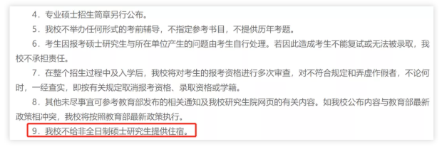 但是一般来说大部分院校还是会提供住宿,所以小编想提醒大家在选择学校的时候要看清楚院校官网发布的各种消息!尤其是要报考非全日制的同学,大部分学校在招生简章中都会说明:非全日制硕士研究生不转户口和档案、不安排住宿等,所以一定要看清楚!