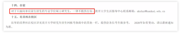 对于只面向非应届生招生的专业学位硕士研究生,一律不提供住宿。