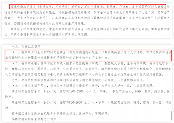 被录取为非全日制的研究生和全日制定向类别的研究生(少数民族高层次骨干人才计划、对口支援西部地区高校计划和定向新疆高校培养博士学历师资计划的新生除外)不安排住宿。