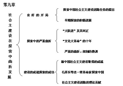 史纲第九章是建设史部分,讲述社会主义建设的初步探索、探索中的严重曲折、建设的成就和探索的成果。这一章节在史纲中的地位是重点章节,从命题的角度来分析,一般情况下,这一章节的考点容易考查选择题和分析题。