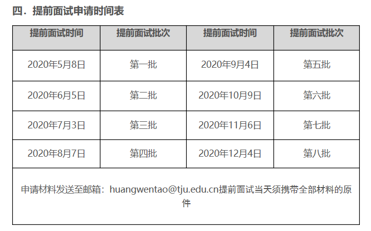 ① 提前面试申请表:在天津大学EMBA官网网站(http://emba.tju.edu.cn/)”资料下载”栏目下载填写。