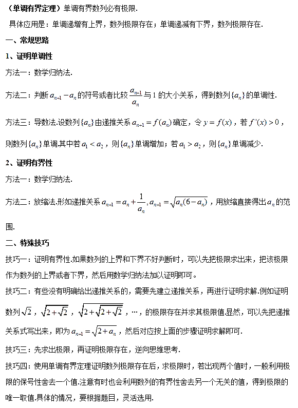 2021考研高数核心知识点:单调有界收敛定理求极限