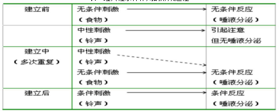 –消退:经典性条件作用形成后,如果反复呈现条件刺激,却不呈现无条件刺激,条件反应的强度逐渐减弱甚至消失的现象