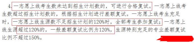 一志愿上线考生数未达到招生计划数的,可进行合格复试(即只要复试合格就等额录取);