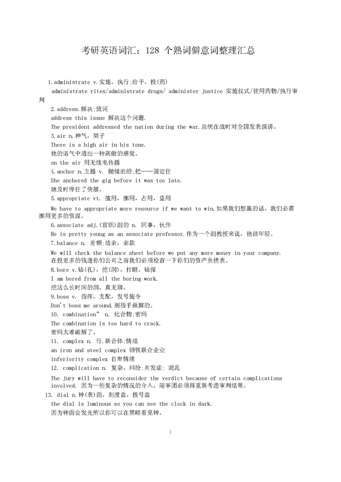 2021考研英语词汇:128 个熟词僻意词整理(可打印)