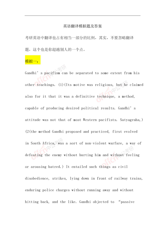 2021考研:英语翻译模拟题及答案(可打印)