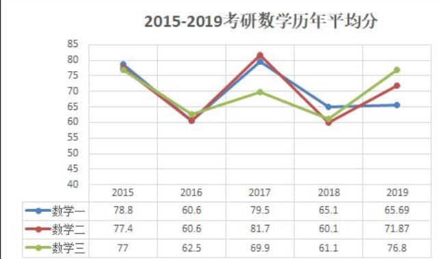 从历年数学平均分来看,数学成绩的高低与年份有着一定的关系,呈现高低起伏的趋势,但是从同一年份不同科目来看,分数高低与科目并没有太大的联系,也就是难度上数学一大于数学三大于数学二的观念并不客观。