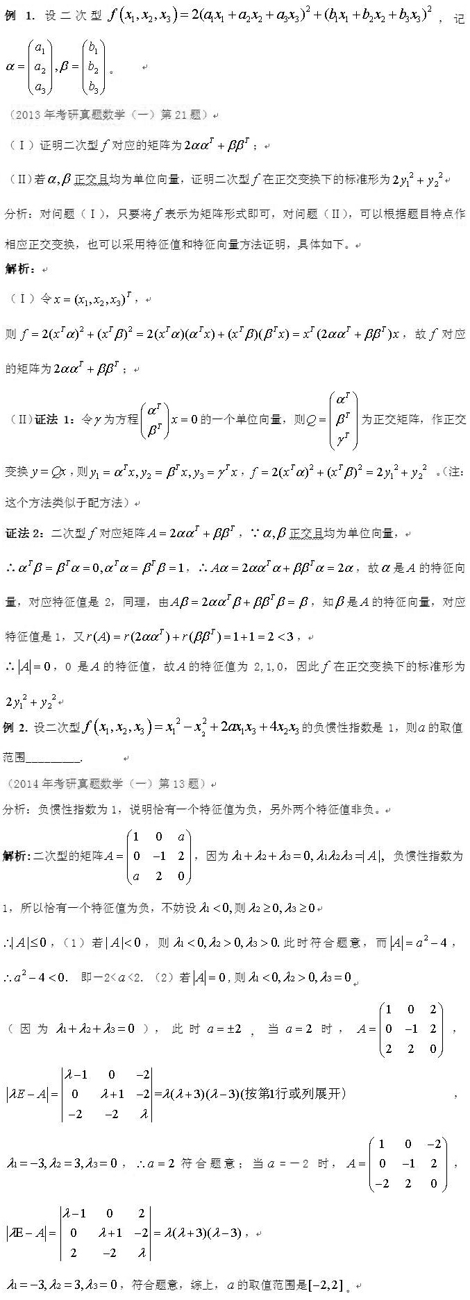 数学辅导老师对线性代数中二次型方面的典型考题作些分析总结,供各位考生参考,希望对大家有所帮助。
