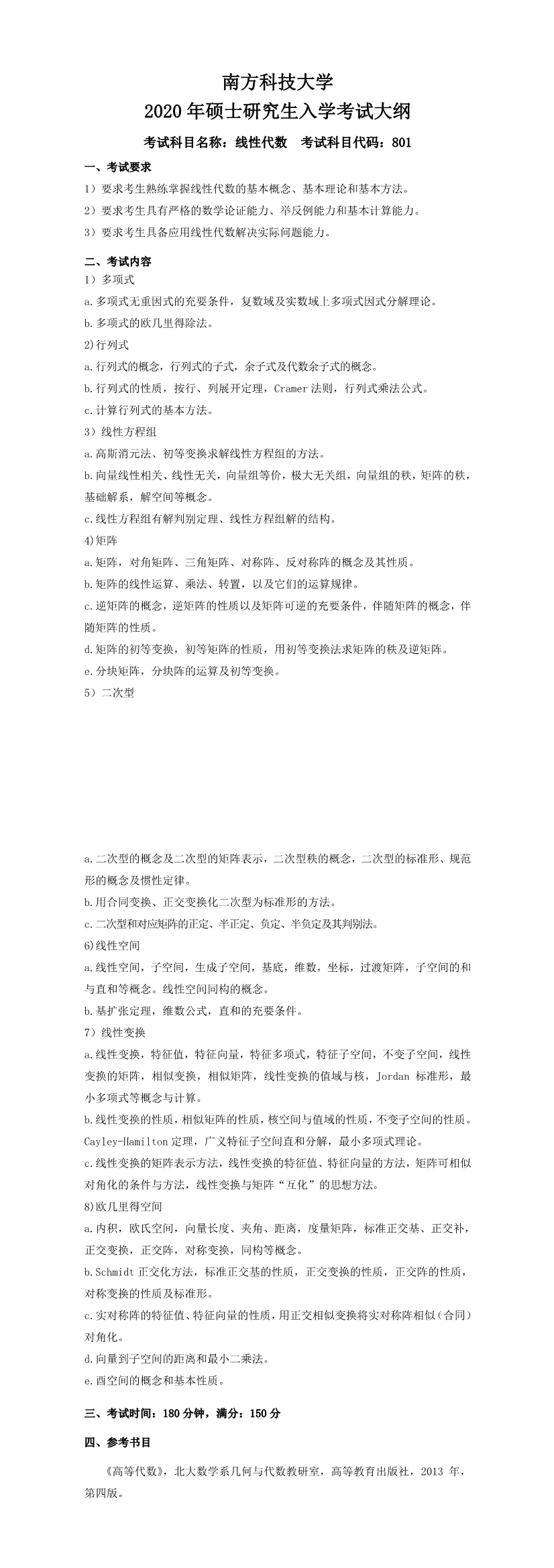 以上就是南方科技大学2020线性代数考试大纲。更多2020南方科技大学其他专业考试大纲,持续更新中。
