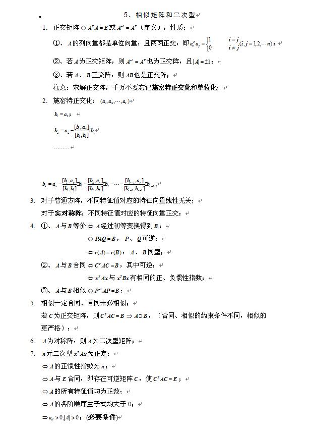 2021考研:线性代数公式大全【相似矩阵和二次型】