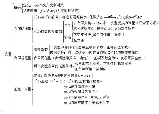 说明:二次型可以看做对特征值部分(主要是实对称矩阵部分)知识的发展与应用,考试对这一部分的要求也可以大致分为三部分:一是二次型合同标准型的计算,二是二次型的惯性指数以及合同标准型,三是正定二次型的判别方法。