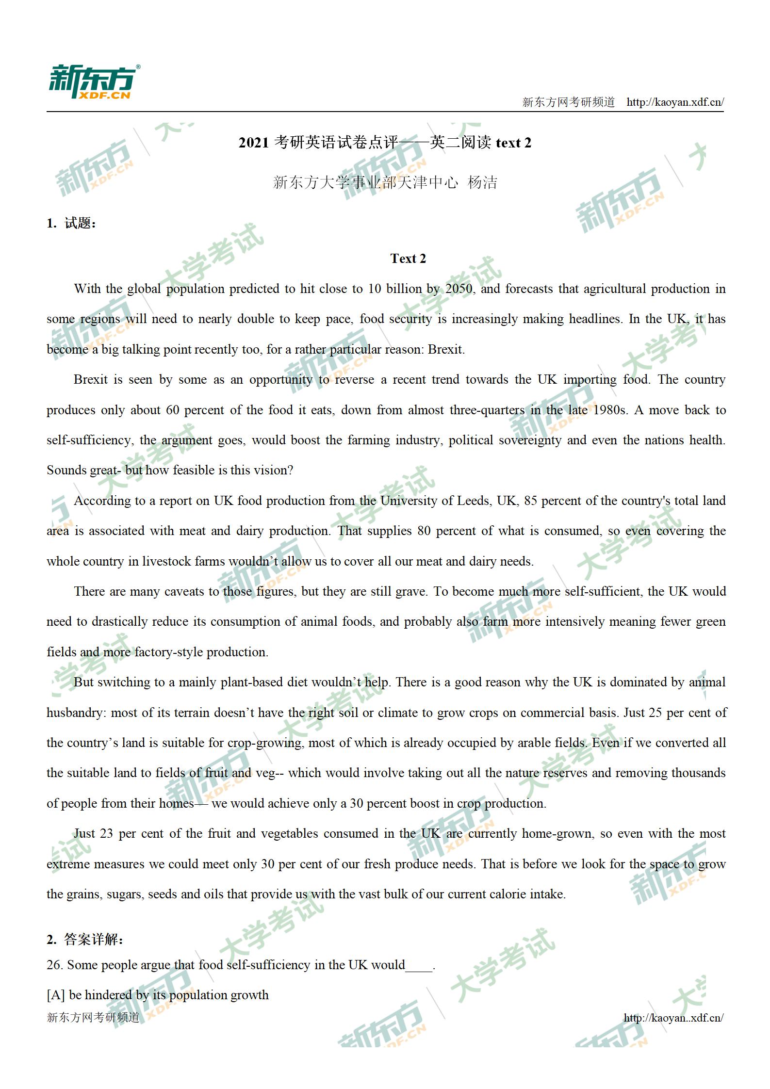 2021考研英语二阅读text 2试题点评(天津新东方)