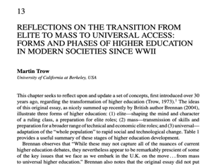 总体评价: 2021年英语一的翻译属于教育类论文,也是继2009年约翰杜威那篇“民主主义与教育”之后,在考研英语中又一次考查与教育相关的文章。今年的原文出自论文集International Handbook of Higher Education(2006)中的第13章,原文的题目是Reflections on the Transition from Elite to Mass to Universal Access: Forms and Phases of Higher Education in Modern Societies since WWII,选入真题时,有个别超纲词汇做了调整。