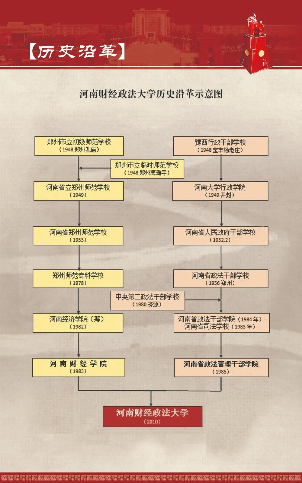 河南财经政法大学位于河南省郑州市,是省属公办全日制普通高等学校,河南省博士学位授予重点立项建设单位,河南省特色骨干大学。校建校于1948年。现有文北校区、文南校区和郑东校区3个校区,占地面积2000多亩,总建筑面积110万余平方米。