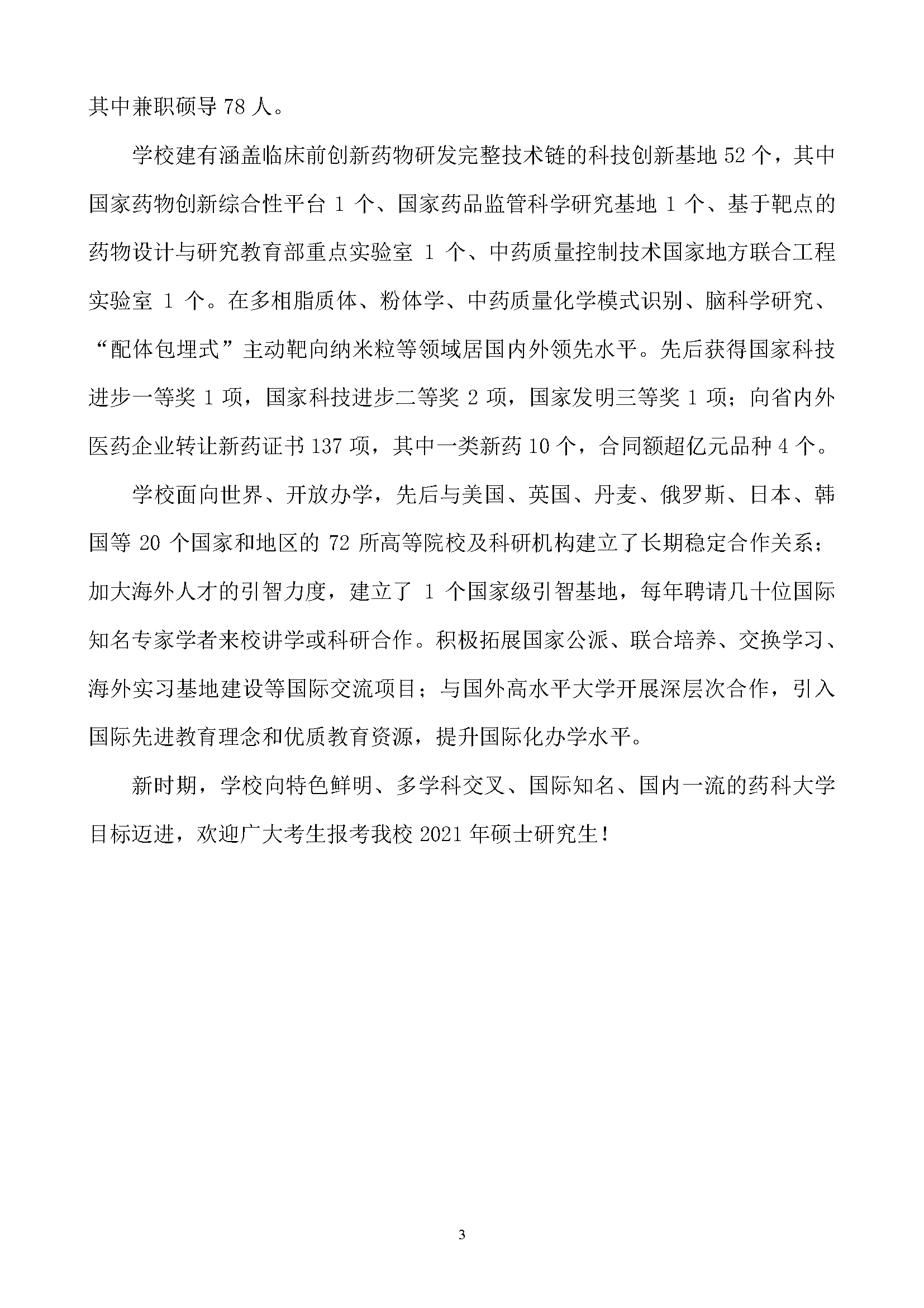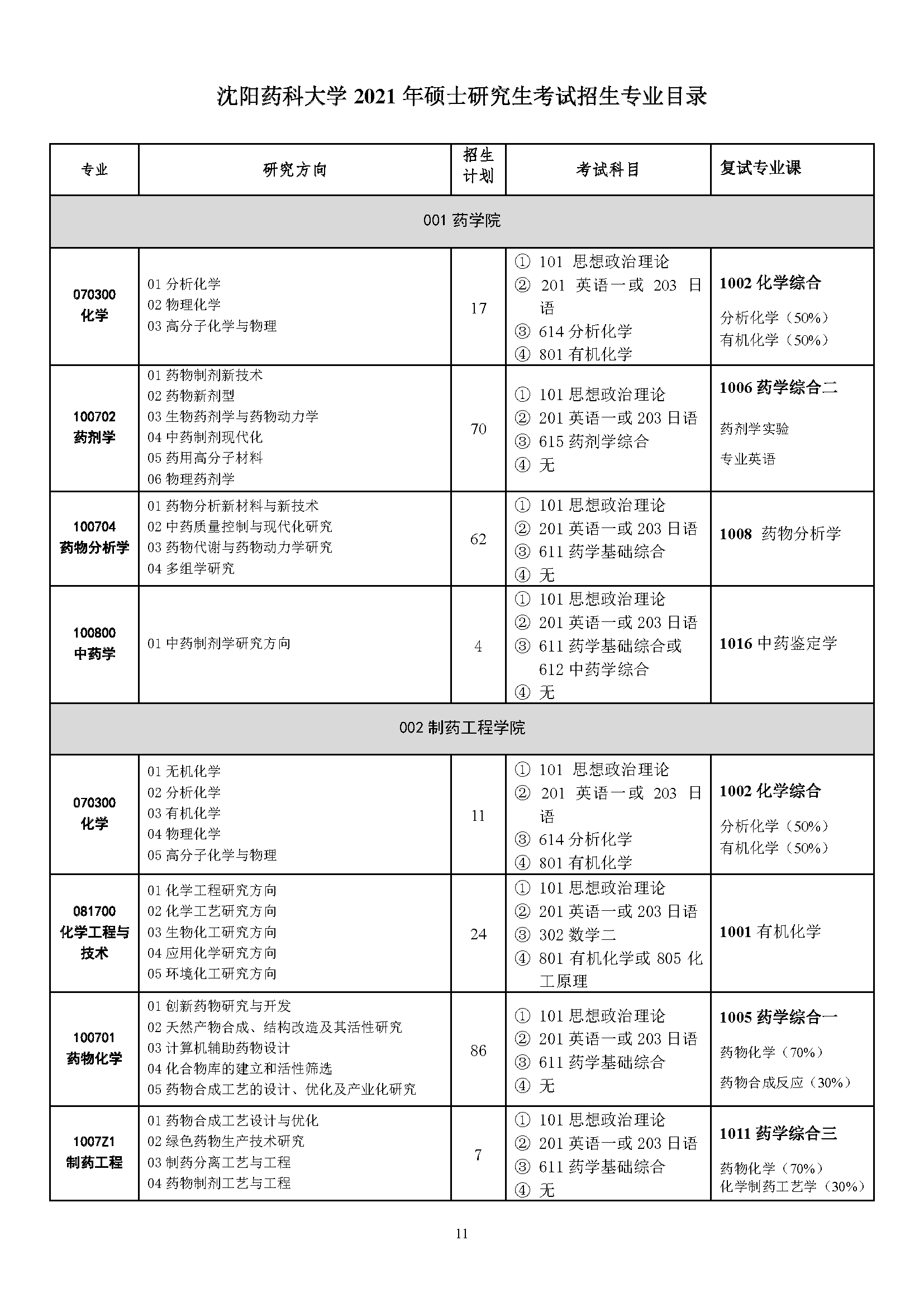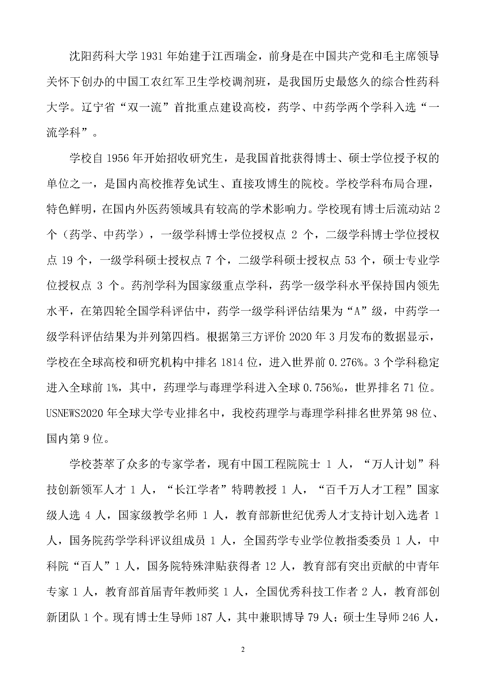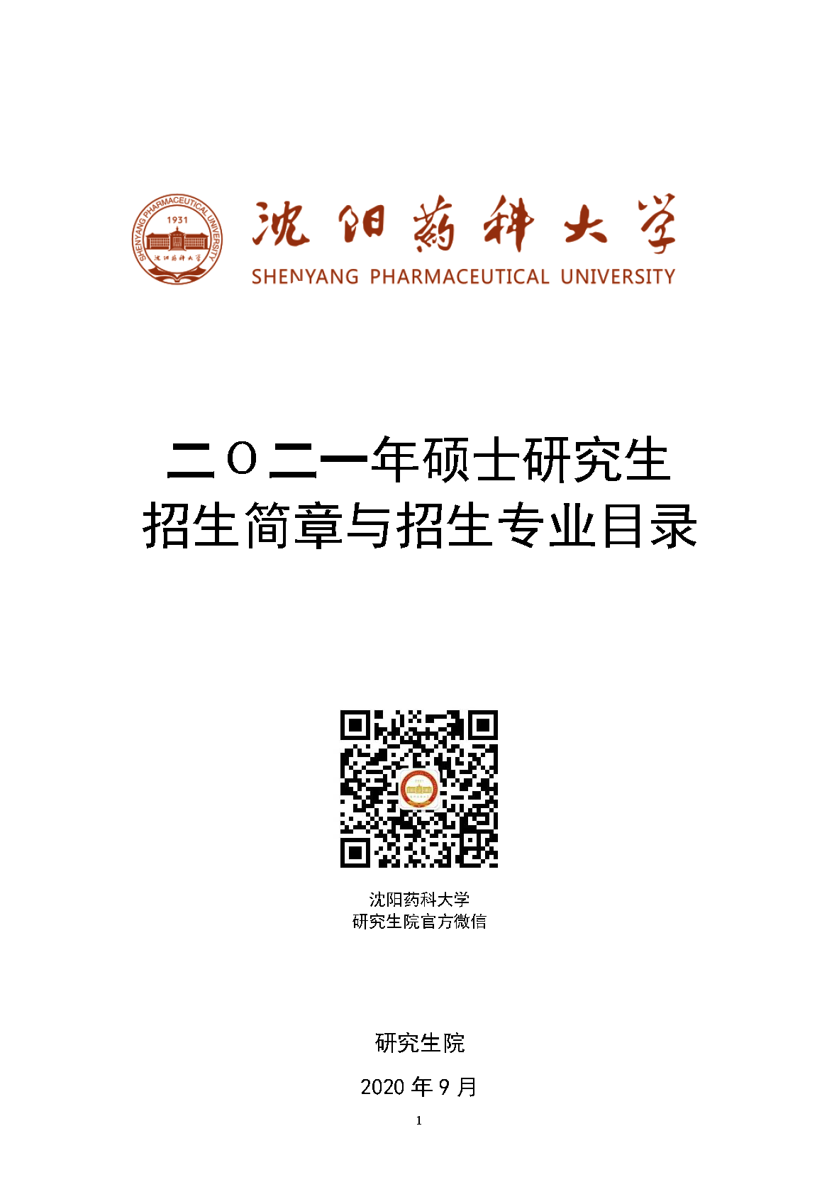 沈阳药科大学2021年硕士研究生招生简章与招生专业目录