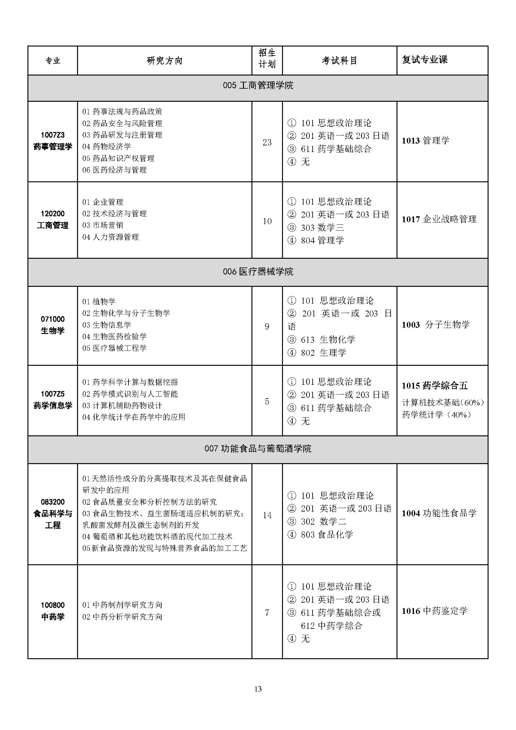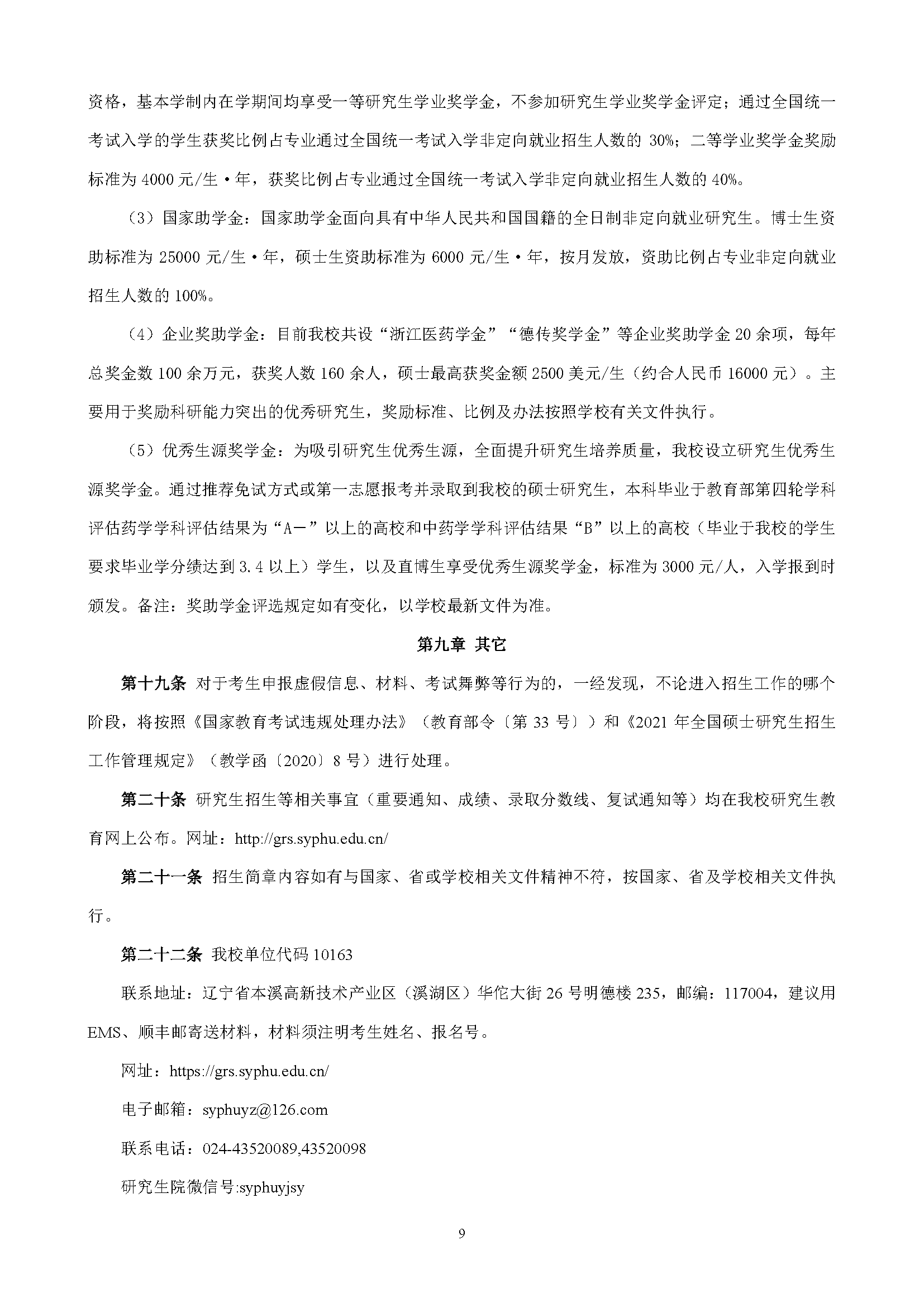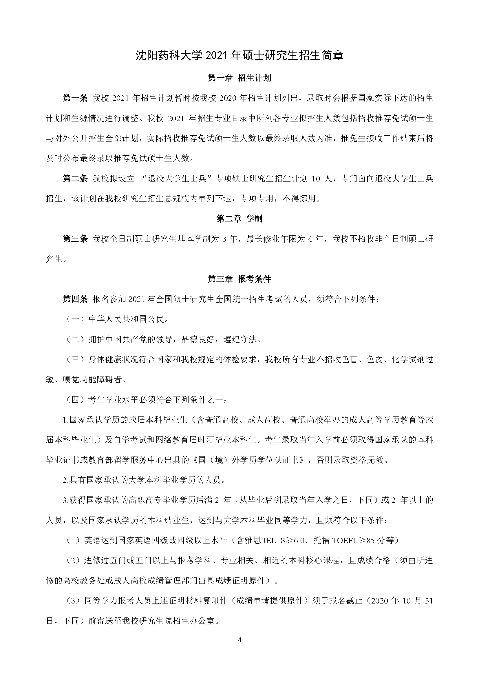 沈阳药科大学2021年硕士研究生招生简章与招生专业目录