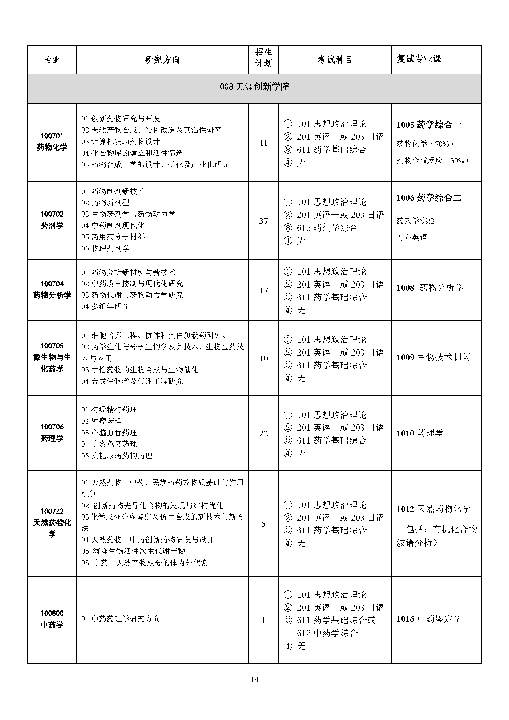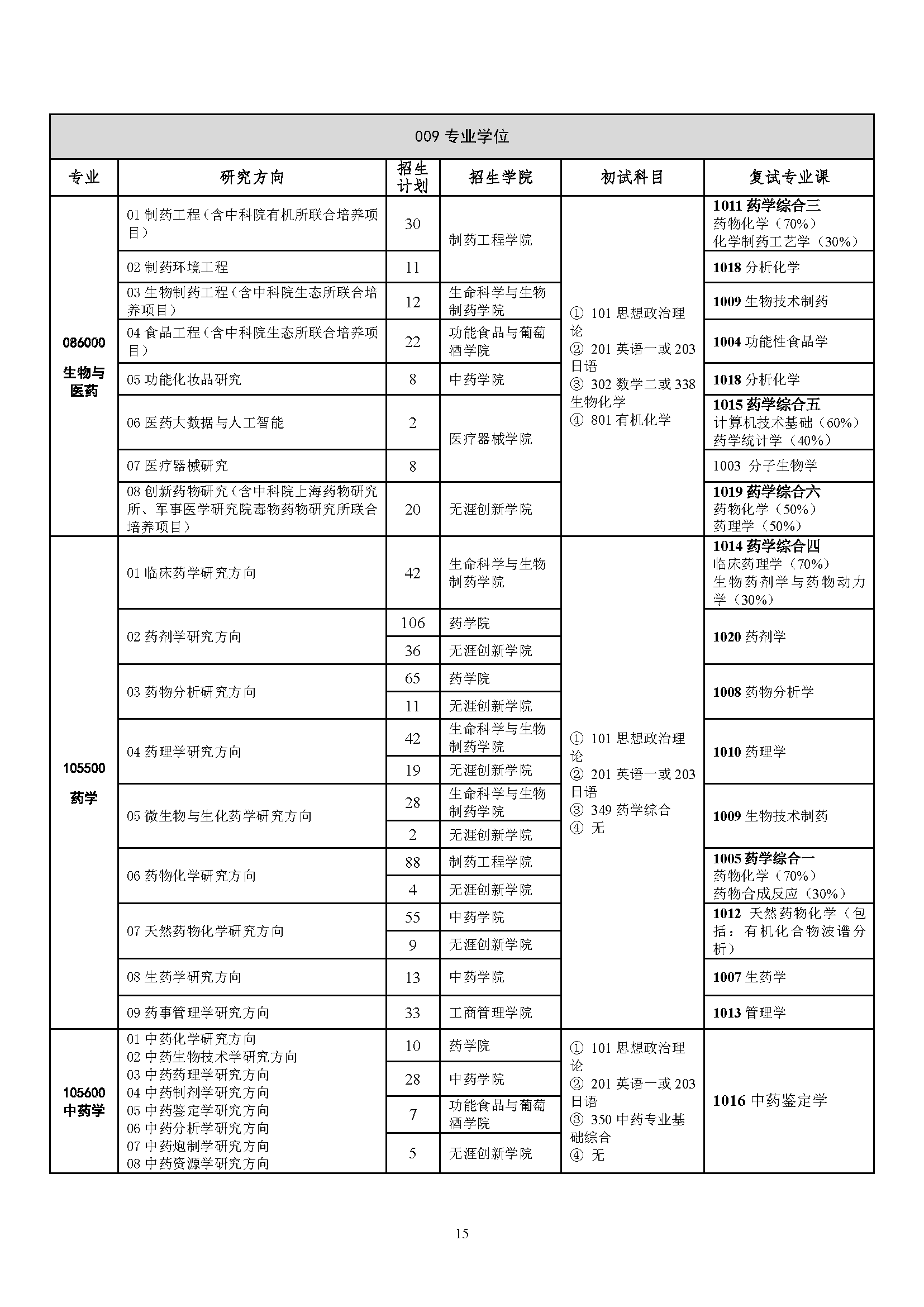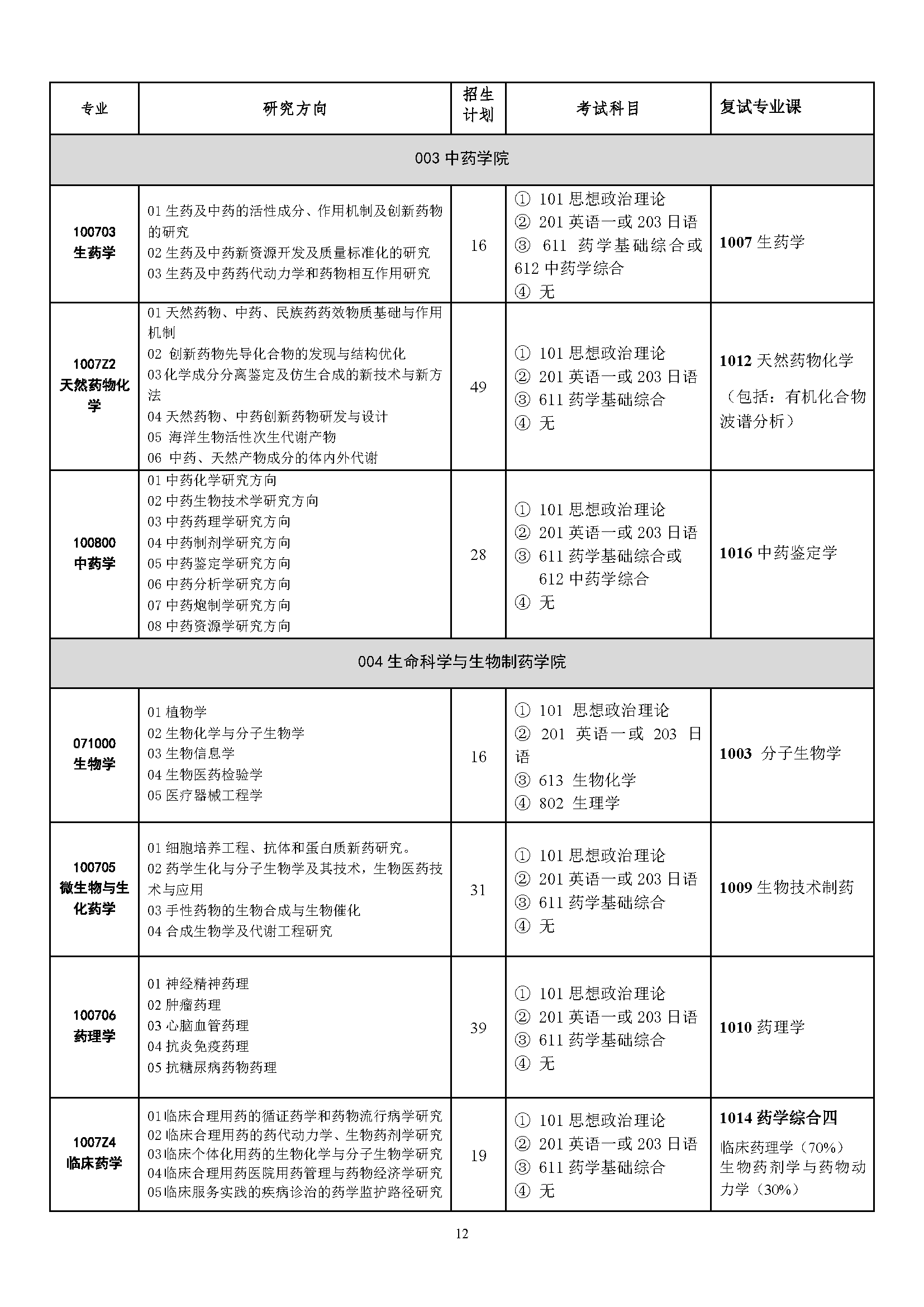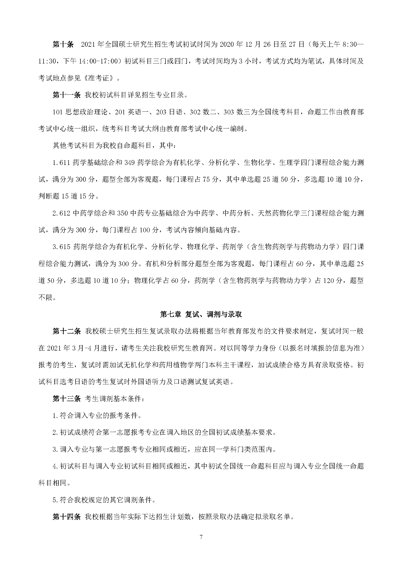 沈阳药科大学2021年硕士研究生招生简章与招生专业目录