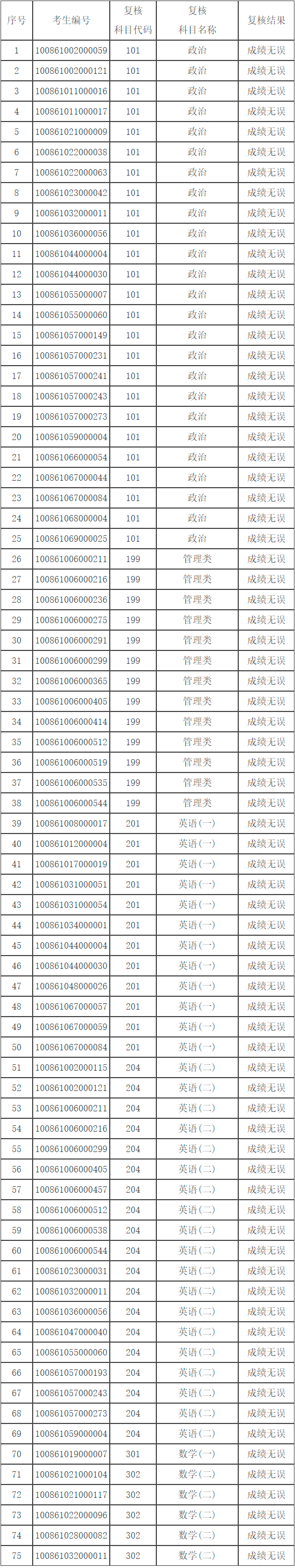 河北省2021年硕士研究生招生考试统考科目成绩复核结果