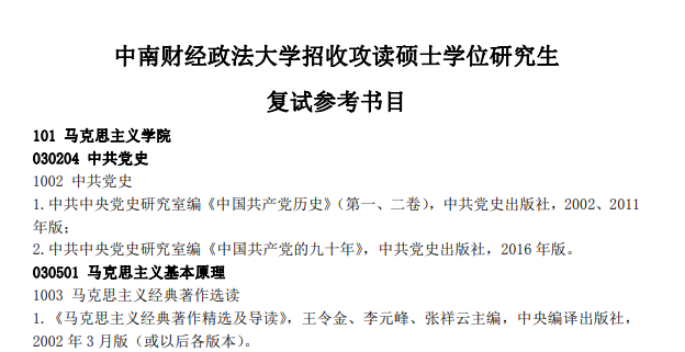 2021年考研中南财经政法大学复试科目参考书目