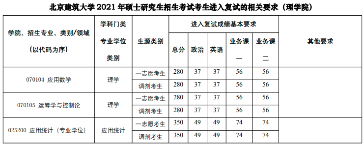 北京建筑大学 2021 年硕士研究生招生考试考生进入复试的相关要求(理学院)
