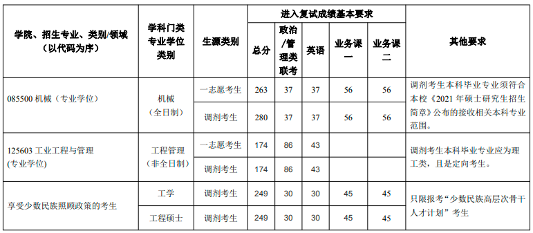 年硕士研究生招生考试考生进入复试的相关要求(机电与车辆工程学院)