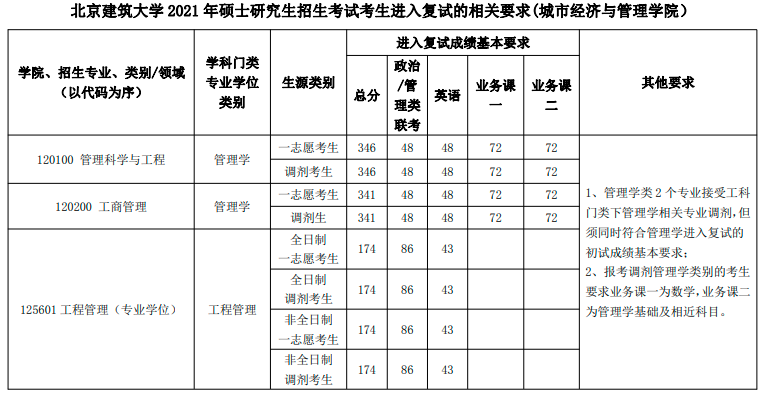 北京建筑大学2021年硕士研究生招生考试考生进入复试的相关要求(城市经济与管理学院)