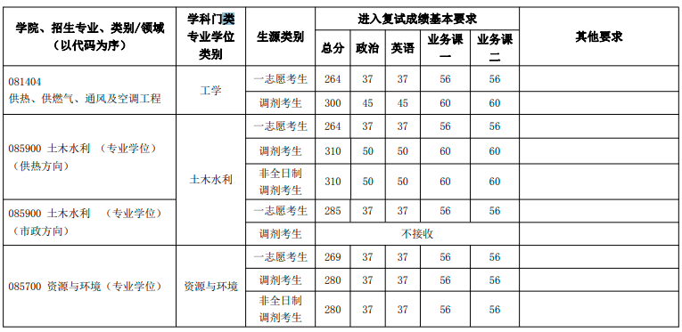 年全国硕士研究生招生考试考生进入复试的初试成绩基本要求(学术型学位类、专业学位类)》相关标准,综合本校各学科专业报考及一志愿考生上线情况等因素,确定了《北京建筑大学