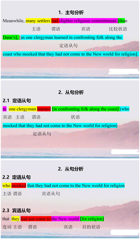①Meanwhile, many settles had slighter religious commitments than Dane's, as one clergyman learned in confronting folk along the coast who mocked that they had not come to the New world for religion.
