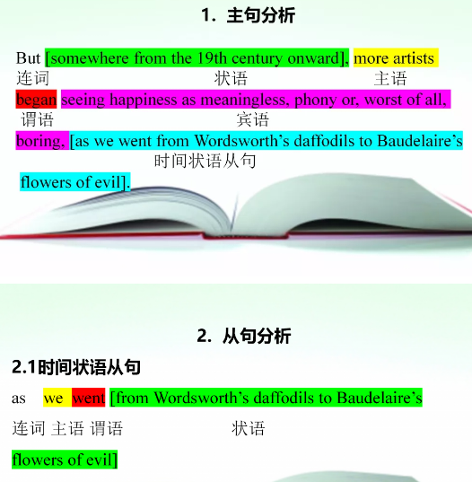 ③(转折:分2)但是从 19 世纪的某个时候开始,当我们从华兹华斯的《水仙花》转向波德莱尔的《恶之花》时,越来越多的艺术家开始把快乐看作是毫无意义的、虚伪的甚至是令人厌倦的东西。
