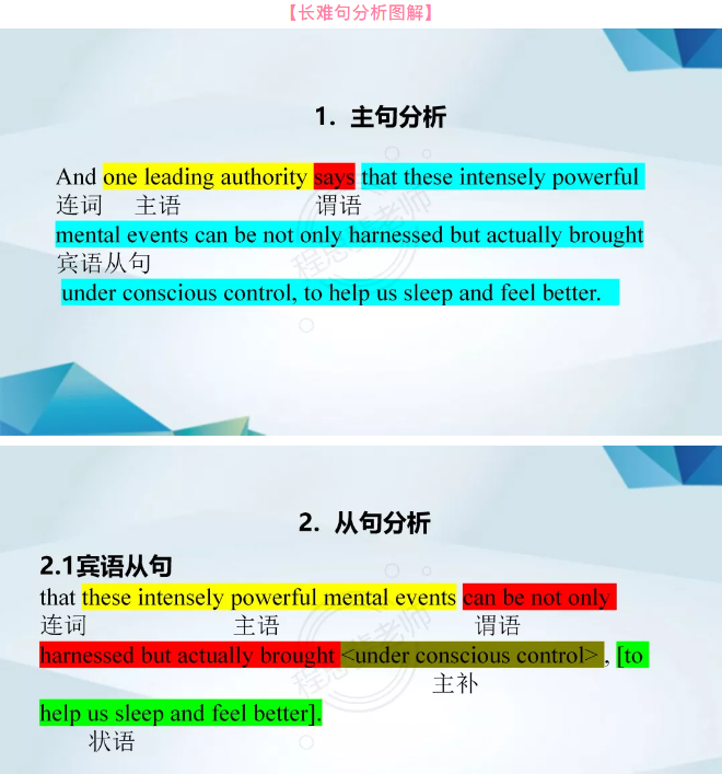 ⑤ (例1:分1) 一名主要的权 威人士说,梦这种异常强烈的精神活动不仅能被驾驭,事实上,还可以有意识地加以控制,以帮助我们更好地睡眠和感觉。