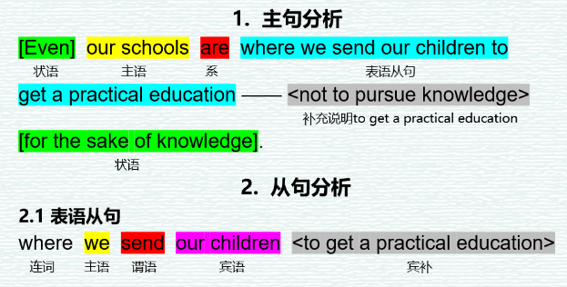 ③(递进:分2)甚至我们的学校也是我们送孩子去接受实用教育的地方——不是为了知识而去求学的地方。