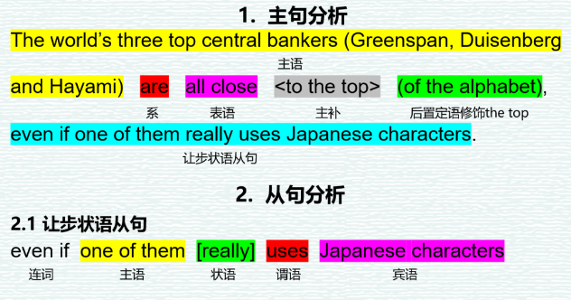 ③(并列:分3)世界上三大央行行长(格林斯潘、杜伊森贝格和速水)都接近字母表的顶端,即使其中一位使用的是日文字符。