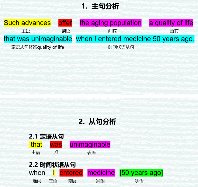 ⑤(并列:分5)这些进步提高了老年人的生活质量,这在50年前我进入医学界时是无法想象的。