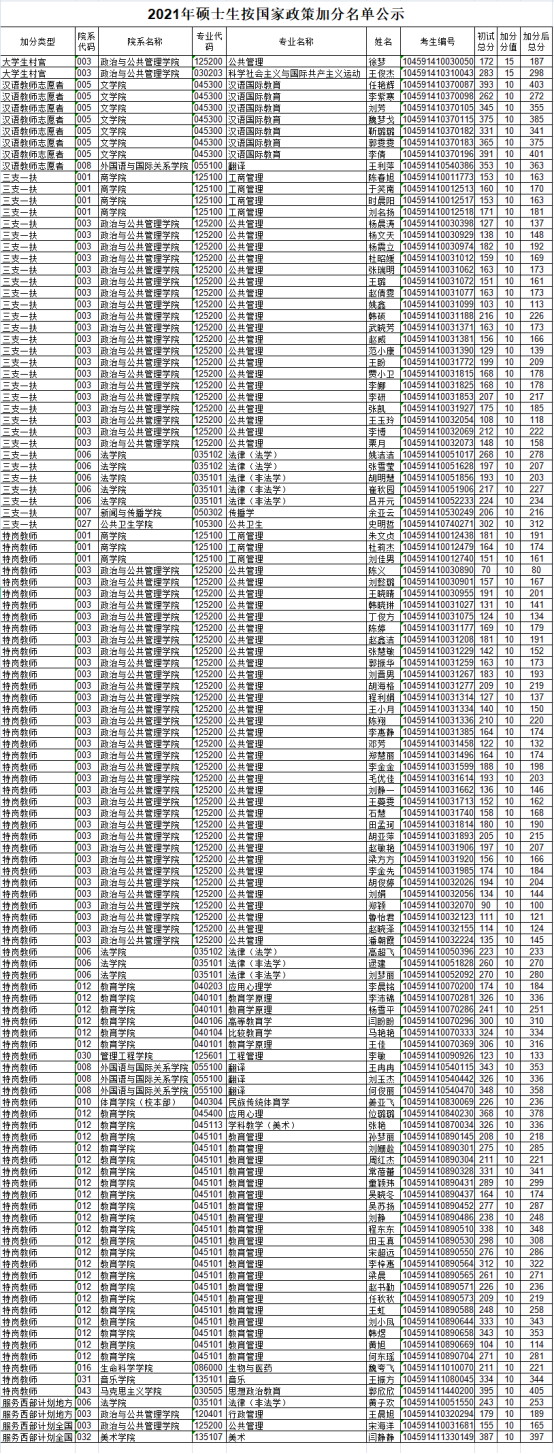 按照国家相关政策,根据研招网提供的名单,现将报考我校符合加分条件的考生名单予以公示(不含缺考考生),公示期自2020年3月19日起至4月02日止。其他类型的加分如有遗漏,无需向我校提交材料,请联系国家相关管理部门确认本人是否在研招网提供的加分名单中,研招网补充的加分名单我校将实时更新安排并补充公示。