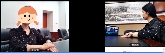 双机位操作:考生双手摆放桌面,第一机位从正面拍摄,须完整拍摄到考生双手以上身体部位。第二机位从考生侧方(或侧后方)拍摄,可以拍摄到考生侧面及主设备电脑全屏幕,需保证面试考官能够从第二机位清晰看到第一机位屏幕。