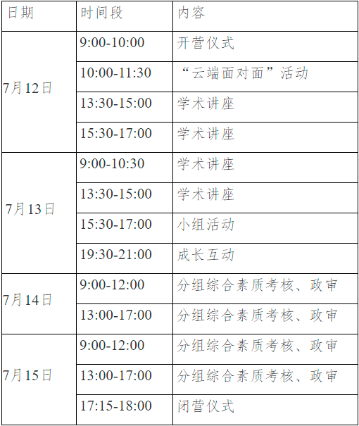 (2)我院将成立专门审核小组,审核申请材料并择优遴选营员,于2021年7月6日之前在报名系统中发布入营名单并通知相关申请人。