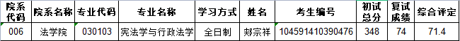 同时补充拟录取以下1名硕士统考考生,最终录取结果以我校政审调档及教育部录检结果为准,名单如下: